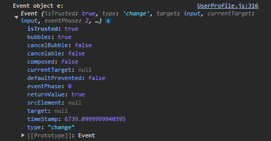 You might therefore think that e.target is null, and that trying to access e.target.files[0] will give an error. However...