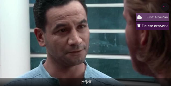 Example of the inline artwork album editing and deletion menu is below, on an example artwork in a gallery. If clicked, a modal appears with the options for the artwork.