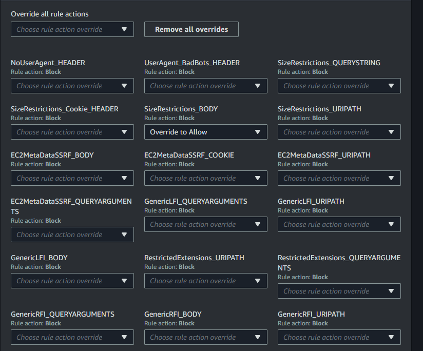 Configure overrides for WAF rule sets