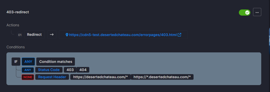 Note the header value syntax carefully. Missing slashes will stop the edge rule working as expected.