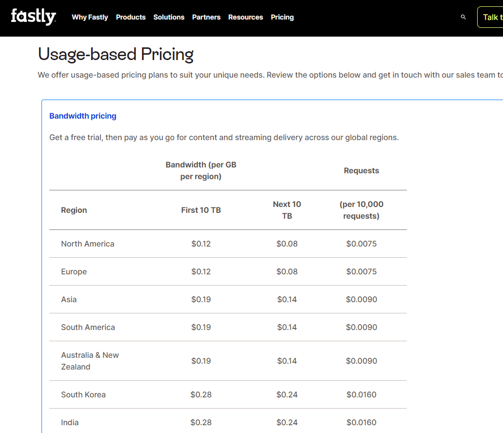 Fastly is another "powerful but expensive" provider. Pricing from their website on 8th Dec 2023: