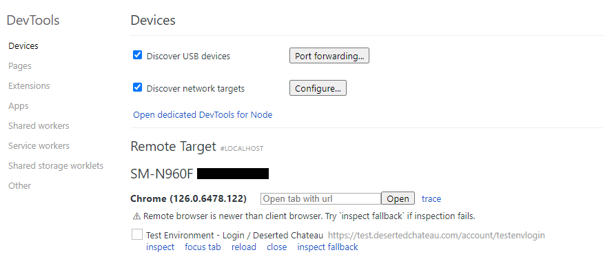 Here, SM-N960F is the physical phone (my Galaxy Note 9 in this case). The 126.0.6478.122 isn't an IP address, that's the Chrome version number for the physical phone.